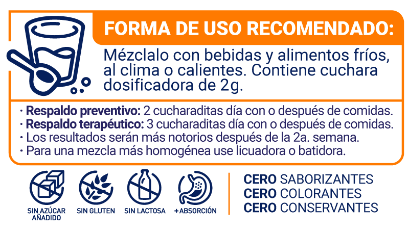 *TRIPLE CONTROL: CORDYCEPS MILITARIS: Pharmacological and therapeutic potential of Cordyceps with special reference to Cordycepin. Hardeep S. Tuli • Sardul S. Sandhu • A. K. Sharma. 1 October 2012 / Accepted: 2 February 2013 / Published online: 19 February 2013 Ó The Author(s) 2013. DOI 10.1007/s13205-013-0121-9.- Cordyceps militaris improves tolerance to high intensity exercise after acute and chronic supplementation: Katie R. Hirsch, Abbie E. Smith-Ryan, Erica J. Roelofs, Eric T. Trexler and Meredith G. Mock.J Diet Suppl. 2017 January 02; 14(1): 42–53. doi:10.1080/19390211.2016.1203386. - Studies on the Antifatigue Activities of Cordyceps militaris Fruit Body Extract: Jingjing Song, Yingwu Wang, Meiyu Teng, Guangsheng Cai, Hongkai Xu, Hanxiao Guo, Yang Liu, Di Wang, and Lesheng Teng. http://dx.doi.org/10.1155/2015/174616 - The polyadenylation inhibitor cordycepin reduces pain, inflammation and joint pathology in rodent models of osteoarthritis, Sadaf Ashraf, Masar Radhi, Peter Gowler, James J. Burston, Raj D. Gandhi, Graeme J. thorn, Anna M. Piccinini, David A. Walsh, Victoria Chapman & Cornelia H. de Moor, https://doi.org/10.1038/s41598-019-41140-1 - JENGIBRE KION: Ginger on Human Health: A Comprehensive Systematic Review of 109 Randomized Controlled Trials. Nguyen Hoang Anh , Sun Jo Kim 1, Nguyen Phuoc Long 1, Jung Eun Min 1,Young Cheol Yoon 1, Eun Goo Lee 1, Mina Kim 1, Tae Joon Kim 1, Yoon Young Yang 1,Eui Young Son 1, Sang Jun Yoon 1, Nguyen Co Diem 2, Hyung Min Kim 1 and Sung Won Kwon,*. 4 December 2019; Accepted: 31 December 2019; Published: 6 January 2020.Nutrients 2020, 12, 157; doi:10.3390/nu12010157. - PIPER NIGRUM: A systematic review on black pepper (Piper nigrum L.): from folk uses to pharmacological applications. Heerasing Takooree,Muhammad Z. Aumeeruddy,Kannan R.R. Rengasamy,Katharigatta N. Venugopala,Rajesh Jeewon,Gokhan Zengin &Mohamad F. Mahomoodally. https://doi.org/10.1080/10408398.2019.1565489. - Piperine-A Major Principle of Black Pepper: A Review of Its Bioactivity and Studies, Zorica Stojanovi´c-Radi´c, Milica Pejˇci´c, Marina Dimitrijevi´c, Ana Aleksi´c, Nanjangud V. Anil Kumar, Bahare Salehi 3, William C. Cho, Javad Sharifi-Rad, doi:10.3390/app9204270 - ACTIVE RELIEF: CÚRCUMA LONGA: Curcumin: A Review of Its Effects on Human Health. Susan J. Hewlings 1,2 and Douglas S. Kalman 3,4 Department of Nutrition, Central Michigan University, Mount Pleasant, MI 48859, USA, Substantiation Sciences, Weston, FL 33332, USA, Health and Human Performance, Nova Southeastern University, Fort Lauderdale, FL 33314, USA, Nutrition Research Division, QPS, Miami, FL 33143, USA. 2 September 2017; Accepted: 20 October 2017; Published: 22 October 2017. Foods 2017, 6, 92; doi:10.3390/foods6100092. - Plant - derived health - the effects of turmeric and curcuminoids: S. Bengmark, M.D. Mesa and A. Gil. Institute of Hepatology University College London Medical School. 69-75 Chenies Mews London - Nutr Hosp. 2009;24(3):273-281 ISSN 0212-1611 • CODEN NUHOEQ S.V.R. 318. - BOSWELLIA SERRATA: Un ensayo piloto, aleatorizado, doble ciego, controlado con placebo para evaluar la seguridad y eficacia de un nuevo extracto de Boswellia serrata en el tratamiento de la osteoartritis de rodilla, Muhammed Majeed, Shaheen Majeed, Narayanan K. Narayanan y Kalyanam Nagabhushanam, doi: 10.1002/ptr.6338. - Efectividad de Boswellia y extracto de Boswellia para pacientes con osteoartritis: una revisión sistemática y metanálisis, Ganpeng Yu, Wang Xiang, Tianqing Zhang, Liuting Zeng, Kailin yang https://doi.org/10.1186/s12906-020-02985-6 - Boswellia Serrata, A Potential Antiinflammatory Agent: An Overview, M. Z. SIDDIQUI* Processing and Product Development Division, Indian Institute of Natural Resins and Gums, Namkum, Ranchi-834 010, India. - CELL COMPLEX: VITAMIN D3: Vitamin D in the Prevention and Treatment of Osteoarthritis: From Clinical Interventions to Cellular Evidence. Clara Yongjoo Park. Department of Food and Nutrition, Human Ecology Research Institute, Chonnam National University,Gwangju 61186, Korea; parkcy@jnu.ac.kr. Nutrients 2019, 11, 243; doi:10.3390/nu11020243. - COLÁGENO TIPO 2: Lugo et al. Nutrition Journal (2016) 15:14 DOI 10.1186/s12937-016-0130-8. Efficacy and tolerability of an undenatured type II collagen supplement in modulating knee osteoarthritis symptoms: a multicenter randomized, double-blind, placebo-controlled study James P. Lugo1, Zainulabedin M. Saiyed1 and Nancy E. Lane2*Undenatured Type II Collagen (UC-II) in Joint Health and Disease: A Review on the Current Knowledge of Companion Animals. Animals 2020, 10, 697; Hasan Gencoglu 1, Cemal Orhan 2 , Emre Sahin 2 and Kazim Sahin 2,*. doi:10.3390/ani10040697.